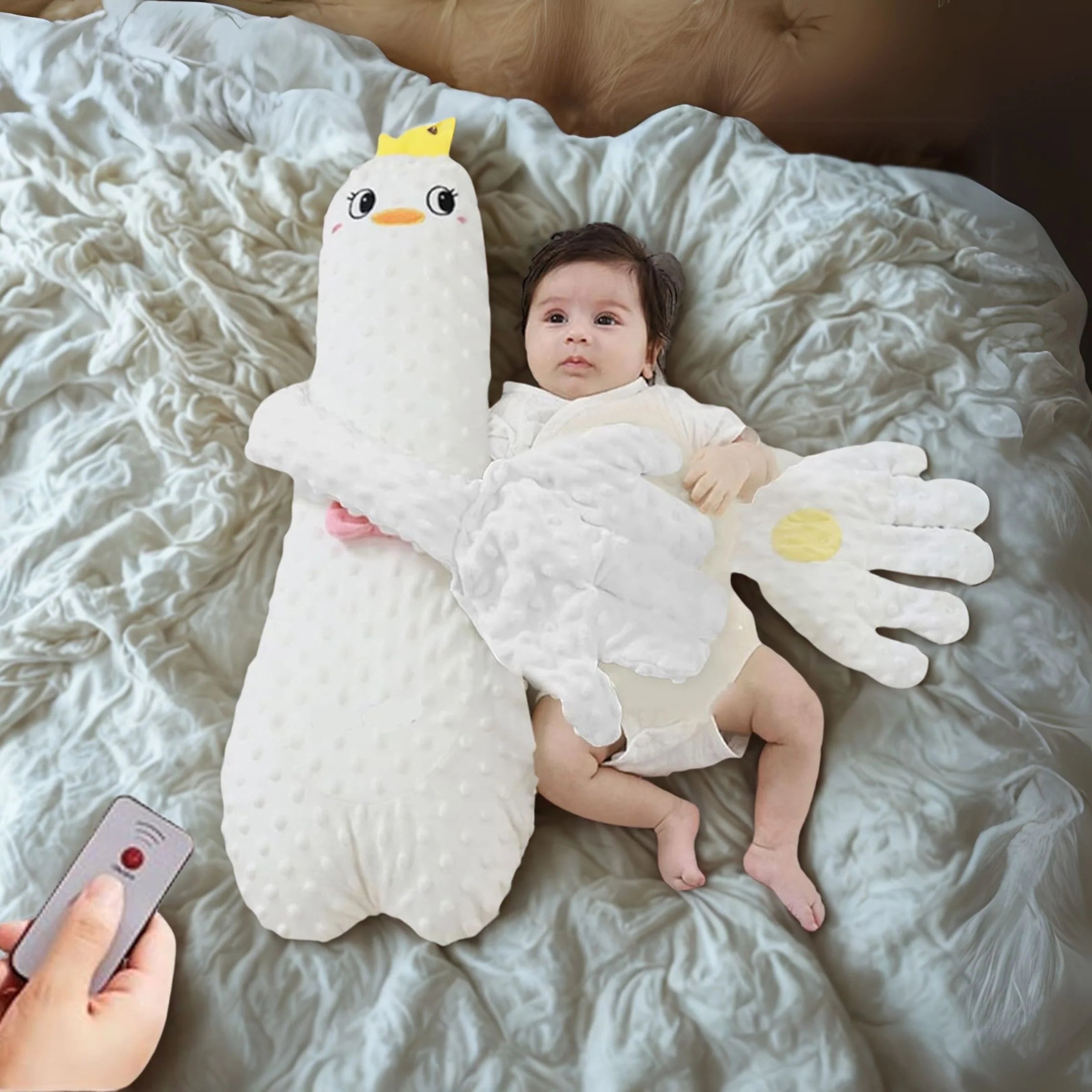 Das Bambinino™ Schlaf-Kuschelkissen vereint Kuscheltier und Einschlafhilfe in einem – perfekt, um Babys und Kleinkindern (0–3 Jahre) beim sanften Einschlafen zu helfen.